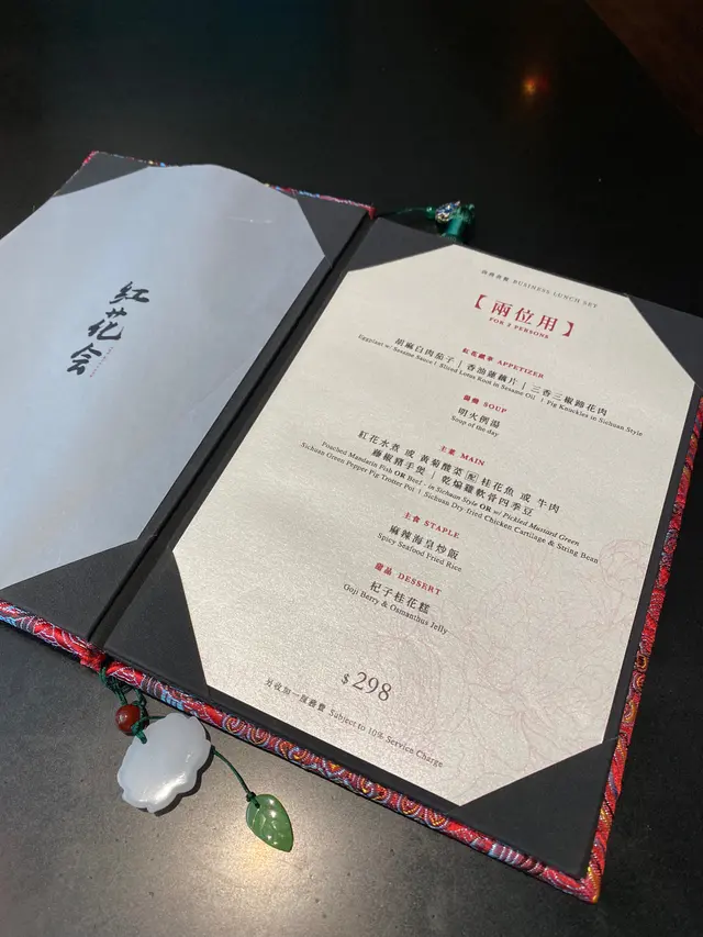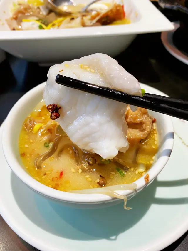 「紅花會」的招牌菜,當然少不了水煮黃菊酸菜菜式。水煮魚選用了多種辣椒乾,連同蒜頭一併爆炒,更特別選用潮州酸菜,比一般酸菜味偏甜及清新,鮮嫩無骨的魚片,配上濃郁足料的鮮魚湯底及麻辣鮮香的湯底,有中和味道和提鮮之用。