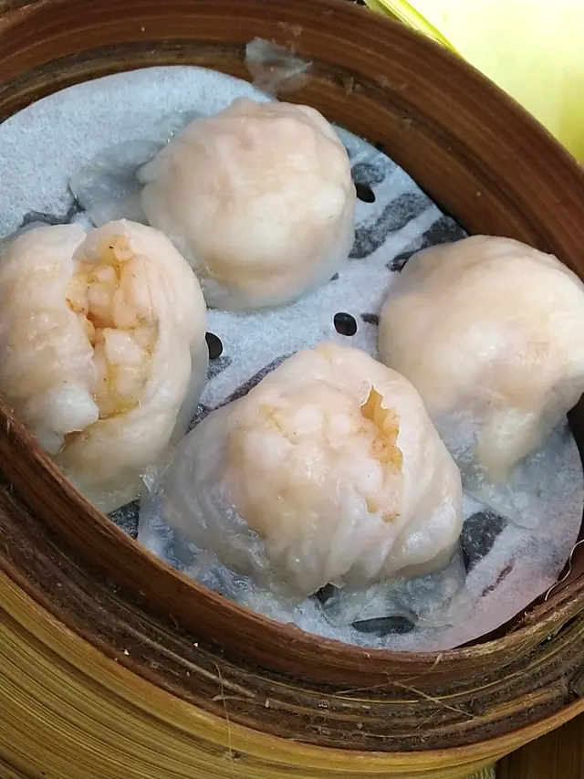 蝦餃 : 未食餃皮已經爆開, 扣分! 蝦肉彈牙, 接受.