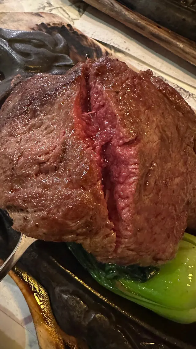 牛扒嫩滑,有肉味,四成熟看上去比較生一點,可能諗住鐵板的熱度會慢慢熟。