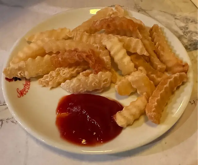 薯條也是在鐵板餐上之前,薯片厚實, 很脆,還是熱的。