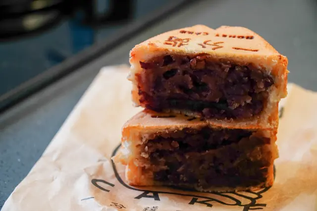 翻熱後的車輪餅外脆度更明顯,餡料是滿滿的。