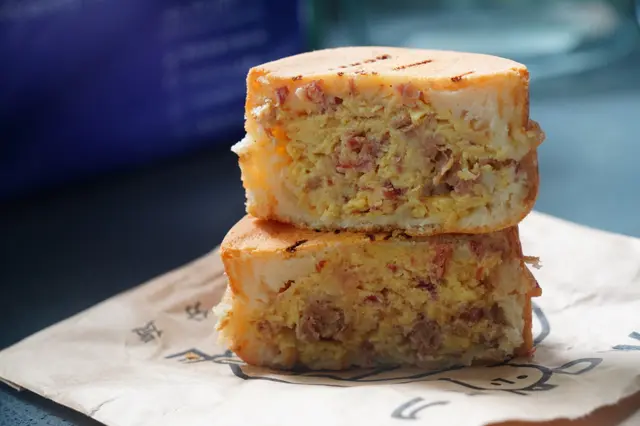 前者有肉香但鹹香味不算太濃,可能是因為車輪餅本身帶甜中和了。