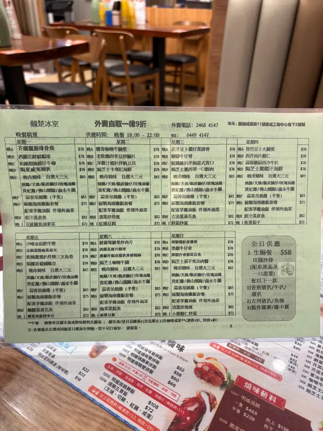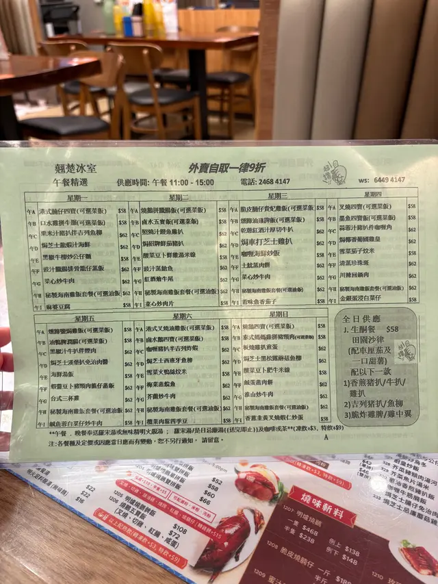地方大、款式多、份量足👍 TryEat等级42025-11-27 关注 出到觀塘,意外地發現這茶餐廳。入到店內,見地方很大、寬闊。而且餐牌勁多嘢食,所有茶餐廳的食物,呢度都可以揾到。晚餐都有九款選擇,每個餐都有湯及飲品。晚市燒味 自選大三元($85)呢個一定要試!所有燒味上枱時都是熱的,叉燒唔肥但軟腍;燒肉皮香脆、半肥瘦;燒鴨多肉有鴨香味。而且份量大。秘製海南難飯套餐($75)配香茅雞油飯 伴郊外油菜呢個餐有肉有菜,海南雞多肉無骨,算幾抵食。雞油飯香口。油菜都不少。外賣可享九折1以上食记乃用户个人意见 , 并不代表OpenRice之观点。赞好分享地方大、款式多、份量足👍 翹楚冰室 https://s.openrice.com/QrLT0RM1V00检举 张贴 评分5味道5环境5服务5卫生5抵食用餐途径堂食