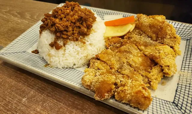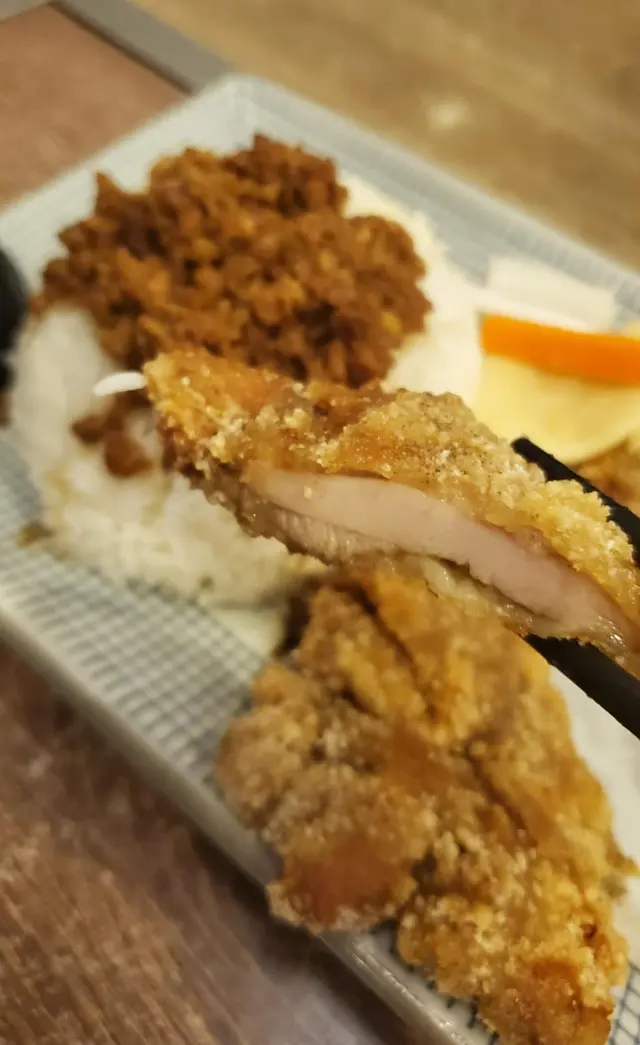 雞扒炸得香脆,炸粉少而肉質嫩滑,意外地好吃,而且份量很大,肉燥飯也調味適中不油膩。
