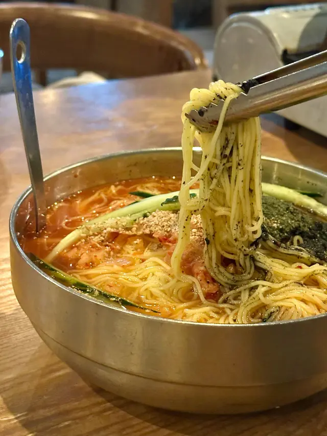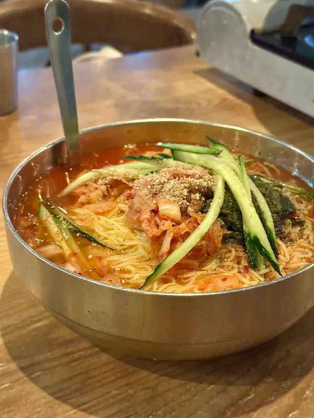 泡菜冷麵 ($120) 泡菜冷麵好適合夏天食,麵條爽彈有嚼勁,冰涼嘅湯底帶酸辣嘅泡菜味,湯中有泡菜同青瓜絲,清爽解膩,愈食愈開胃