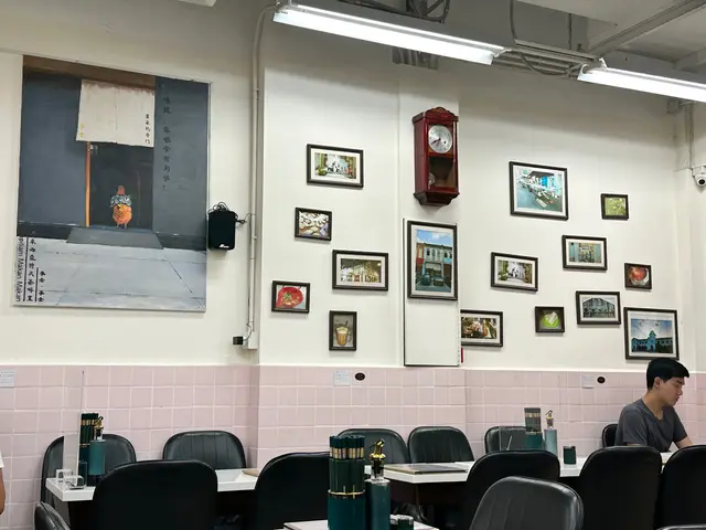 階磚地板,滿牆都是東南亞風景掛畫,復古背景音樂🎵很應景,充滿復古風情