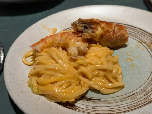 焗奶油大蝦伊麵味道好特別,甜甜地嘅,幾開胃,奶油大蝦肉質都唔錯😌正正常常🤭🤭
