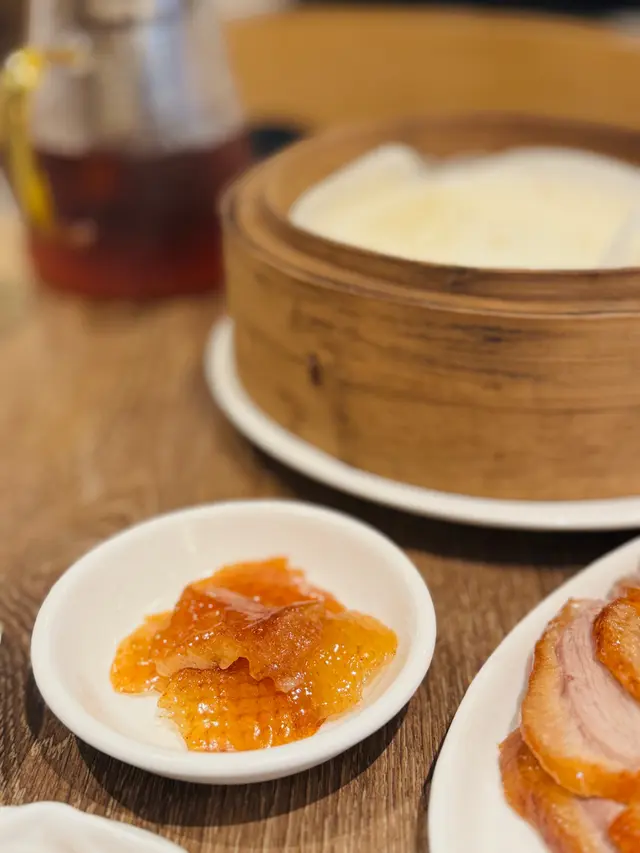 配料選擇豐富,包括青瓜、京蔥、哈密瓜、砂糖、黃梅醬和北京填鴨醬。一定要試試黃梅醬搭配蜂蜜,梅香四溢,令人印象深刻。