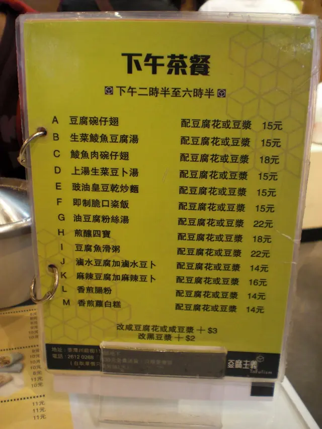 是日公眾假,3:00pm嚟到豆腐主義,人多擠逼得緊要,都好彩等咗唔耐搵到4個位。一室黑白型格裝修,中英文店名改得有型,有別於一般傳統豆腐鋪,電腦機印點菜單,數量、種類一目了然,雖然座位係逼咗啲,但以豆腐鋪嚟講,可接受啦,唔通食到「印印腳」,慢慢hea咩