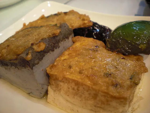 又叫咗兩個H餐,一個配凍豆腐花,另一個配熱鹹豆漿。四寶有青椒,矮瓜,黑豆腐同普通豆腐,又係現場即釀即煎,咬落夠燙口,要小心食,稍為焦點係釀黑豆腐,質地比普通豆腐較實,豆味亦唔見得特別重,唯聽人講黑豆營養成份高;另外,煎釀嘅魚肉也比較少,得薄薄嘅一層晌面。