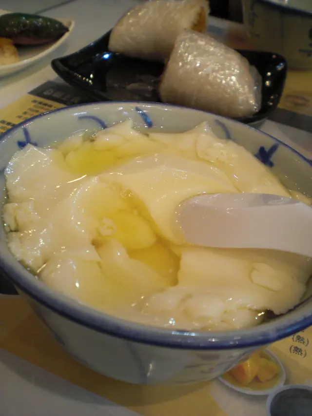 我哋叫咗兩個F餐,一個配熱豆腐花,另一個配熱薑汁豆腐花(+$3)。粢飯紮得幾夠實淨,糯米黏糯,加埋肉鬆、香脆油炸鬼,都叫幾好喎。豆腐花晌現場由師傅即煮即撞,亦係此店賣點,新鮮熱辣豆腐花,果然幾香滑,豆味頗濃,都甚有水準