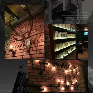 店內的燈光略帶昏暗,室內設計以紅磚及木材為主調,加上獨特的烏絲吊燈,水喉通的裝飾,令店內注入工業風味。店內還有一個大大的酒吧櫃,同場還陳列了不少啤酒杯,充滿德國餐廳的氛圍。
