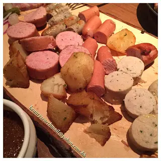 好像放在最左邊,腸身較粗,表面以交叉式切開的是「德國 "金裝" 牛肉豬肉腸」,不吃牛的 Foodie 要注意喔!但 BeautySearch 卻甚為喜歡,加入牛肉的香腸,肉味更濃、更香,份外滋味。