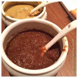 餐廳還提供了兩款醬汁, BeautySearch 怕辣,所以只蘸了點點蜜糖芥末醬來嚐嚐,微甜,也不錯喔!