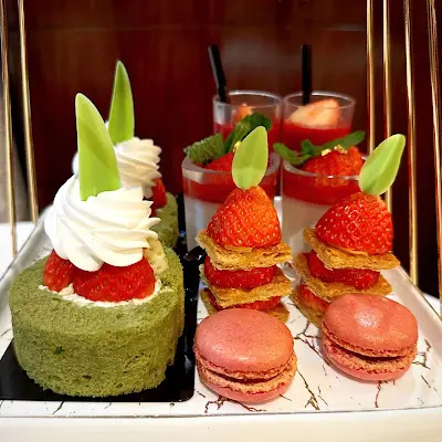 甜品又係大大件真係抵食到呢!野草莓凍湯、士多啤梨拿破崙、士多啤梨綠茶卷、金箔草莓意大利奶凍同埋馬卡龍全部都有士多啤梨,我就特別鍾意做得好香脆嘅拿破崙,我覺得唔係芒果換咗士多啤梨一樣咁吸引。