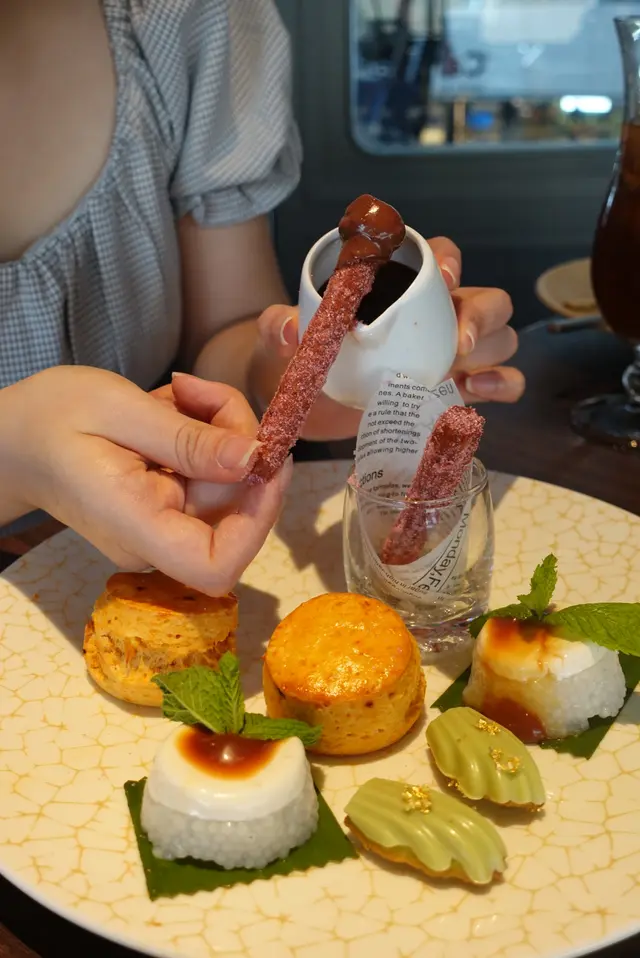 仲有顏色夢幻嘅粉色西班牙油炸鬼配朱古力醬💖