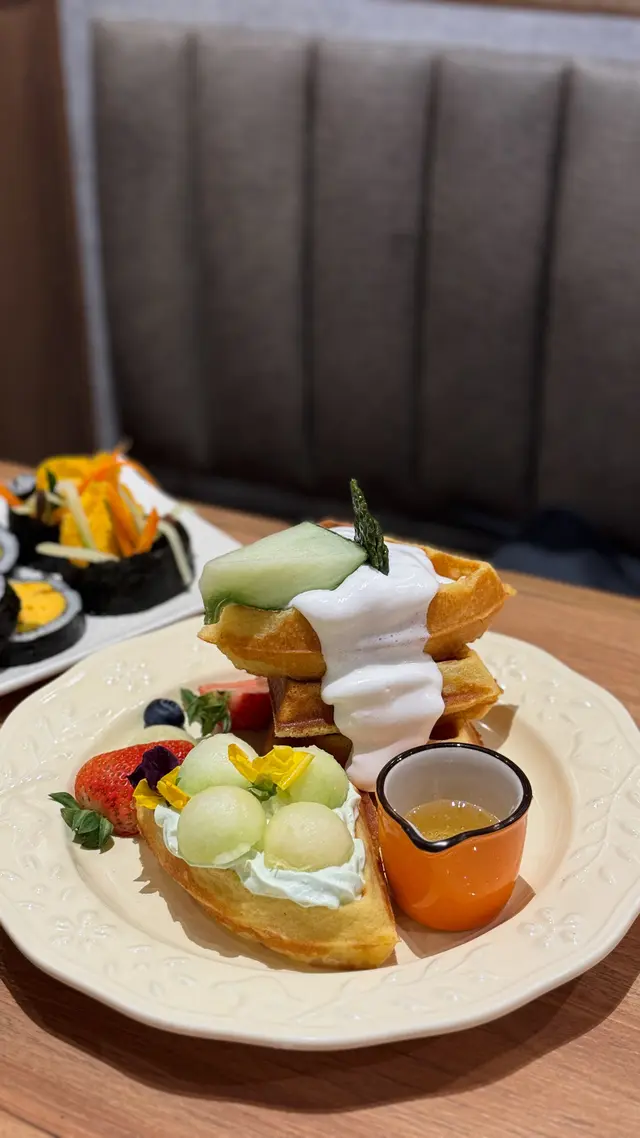 窩夫整得啱啱好 唔會太熟 色澤好靚 上枱嘅時候已經聞到好香嘅窩夫味🧇 配埋蜜瓜都幾清新 作為甜品一流😍