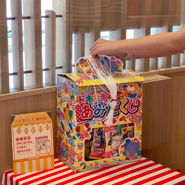 🎁 食完仲可以玩夏季限定既「千本引」拉繩小遊戲,拉出夏日祭典玩具/零食/餐飲優惠券(價值$29)!
