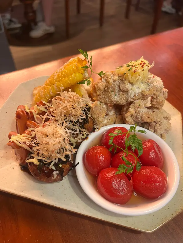 這款拼盤靈感來自日本祭典的經典屋台小吃,包含: