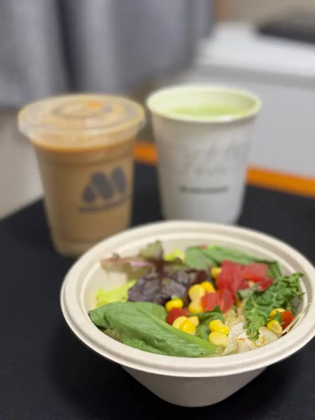 田園沙律有生菜、粟米及番茄,新鮮爽脆,配以丘比芝麻醬