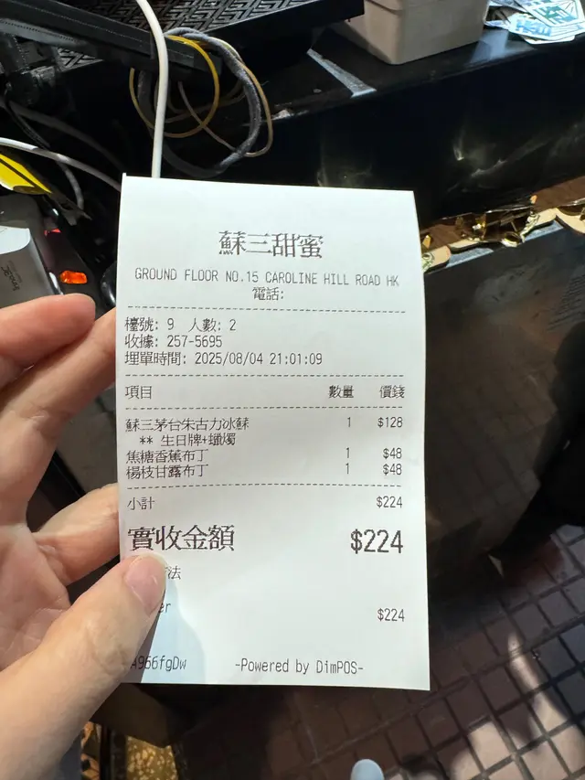 多人推介的蘇三甜蜜 joeychung1212等级42025-08-14541 浏览 关注 銅鑼灣甜品店選擇多,但要搵到一間有懷舊氛圍又有創意甜品嘅地方,蘇三甜蜜真係有surprise。店舖以60年代冰室風格為主,綠白格瓷磚、舊式吊扇、港產片海報,坐低就好似穿越返舊香港。座位唔算多,但翻枱快。//焦糖香蕉布丁表面焦糖層薄而脆,輕敲即碎,入口「卜卜聲」好治癒。香蕉熟度啱啱好,唔會太軟,同滑溜布丁融合得好自然。甜度適中,整體口感有層次,甜而不俗。//茅台朱古力冰蘇 呢款真係創意!仲可以寫埋生日名~冰蘇係韓式刨冰做法,綿密如雪,入口即化。上面鋪咗朱古力醬同茅台酒漿,味道出奇地夾。朱古力濃郁但唔霸道,茅台酒香滲出尾韻,有少少似酒心朱古力,但更清新。可以自己拉走膠片打卡。醬汁如瀑布般傾瀉,視覺效果一流,打卡必備!💰價錢方面,焦糖香蕉布丁 $55,茅台朱古力冰蘇 $118,絕對值回票價以上食记乃用户个人意见 , 并不代表OpenRice之观点。赞好分享多人推介的蘇三甜蜜 蘇三甜蜜 https://s.openrice.com/QrLT0EzgkW0检举 张贴 评分5味道4环境5服务4卫生5抵食用餐日期2025-08-11用餐途径堂食用餐时段晚餐