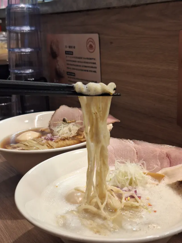 追求濃厚質感及味道爆發的建議點這碗。醬油拉麵湯底有層次感;這碗有頗濃烈的雞湯味,鹹味係突出雞味,加上有雞泡增添濃郁口感,整體會帶有點heavy但不膩的味道。小編個人喜歡這個,所以都把湯全喝了。麵條就使用了“低加水全麥拉麵”,裸粒口感比較明顯,有咀嚼感且帶有彈性。