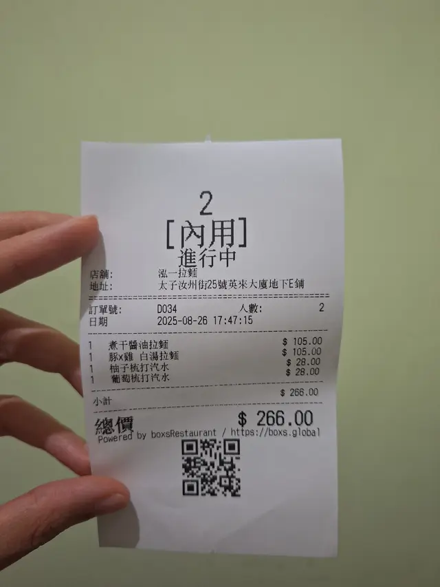 店鋪6點正開,座位不算多,大約10人左右,環境整齊舒服。種類有湯麵及撈麵,沒有麵底自選。下單之後,大約5分鐘就上菜。