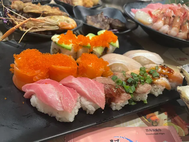 壽司:三文魚壽司、醬燒牛肉壽司、油甘魚腩壽司、極上帶拖羅壽司、花之戀等等…..壽司種類尚算多,是大眾喜歡的口味。壽司的味道發揮是正正常常水準。海膽壽司是一點點苦味,始終現在不是海膽旺季榴槤之戀味道特別,愛吃榴槤的人可以一試🤣。
