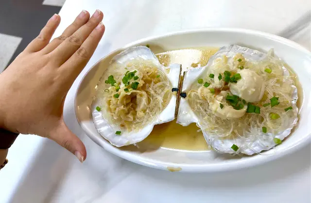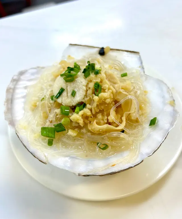 蒜蓉粉絲蒸元貝鮮美多汁,蒜蓉的香氣渾然天成,與粉絲的柔韌口感相得益彰。蒸製時元貝完全吸收蒜蓉的精華,每一口都充滿濃郁蒜香,粉絲則吸收了元貝鮮味,令人回味。