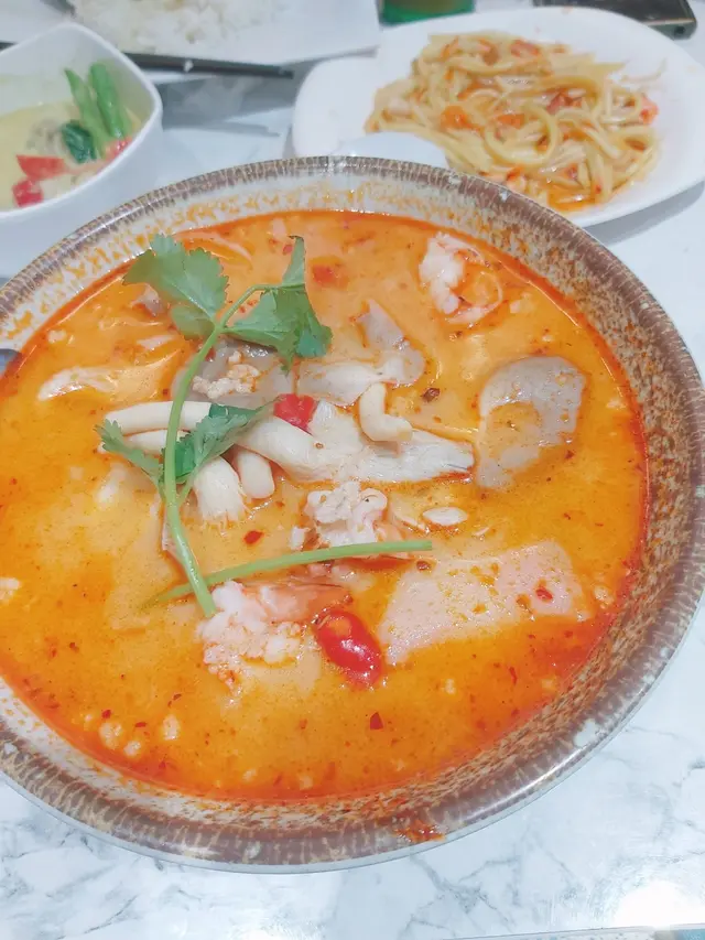 多次光顧的泰國菜 choiconnie等级42022-01-091K 浏览 关注 呢間位於九龍城嘅泰國餐廳,一出地鐵站就會見到,非常就腳。 呢日中午我和朋友就食咗, 泰國冬陰功 河粉, 酸酸甜甜嘅冬陰功湯底,配上幾隻新鮮嘅蝦,仲有好多秀珍菇,味道好正宗。 青木瓜沙律 ,青木瓜沙律份量雖然係少咗啲,但係都有好多蝦米,和小辣椒,食起嚟好夠辣,非常惹味。 泰式青咖哩 ,大腕上嘅泰式青咖哩雞,椰汁味好濃,用嚟送飯一流。 餐廳環境都幾闊落,店員非常有禮貌。 價錢適中,大家不妨嚟試下。以上食记乃用户个人意见 , 并不代表OpenRice之观点。赞好分享多次光顧的泰國菜 泰式燒烤 https://s.openrice.com/QrLT0F9X100检举 张贴 评分5味道4环境4服务4卫生4抵食用餐途径堂食