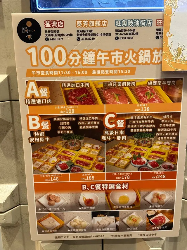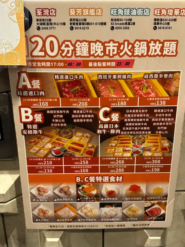 成人120分鐘放題C餐 $268 (19:00前離座)