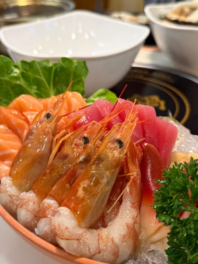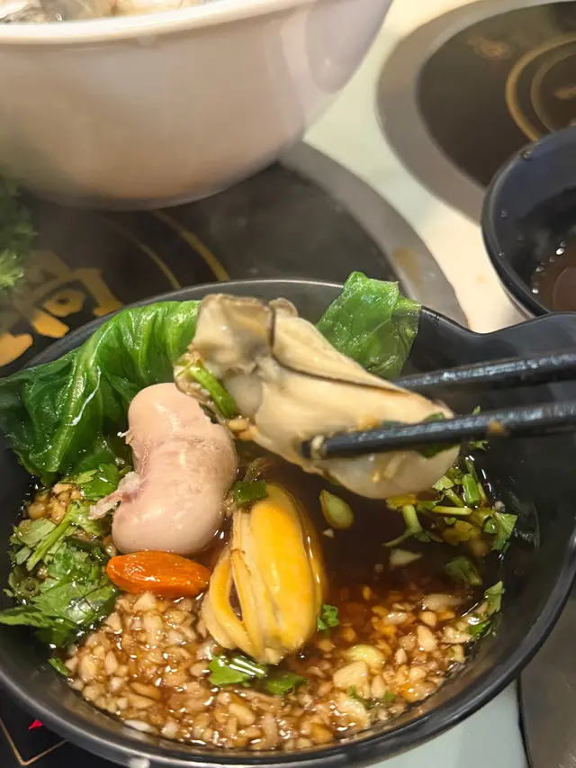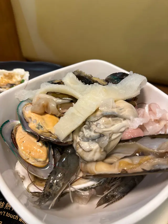 海鮮新鮮彈牙,大蝦同廣島蠔特別鮮甜!😍 煮喺昆布湯底,保留海洋風味!🥄 建議加少許檸檬汁,清爽提鮮!🌊