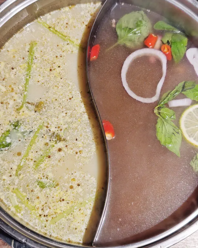 湯底方面🥣,我哋揀咗鴛鴦湯底🍲,一次過試晒兩款口味:越式香濃牛肉鍋湯底比較清,😆帶有香茅同埋其他香料嘅味道🌿,有啲似越式牛河嘅湯底;胡椒豬肚🐓雞鍋就夠晒暖胃,胡椒味香濃🌶️,豬肚同雞肉都好腍滑🐔!