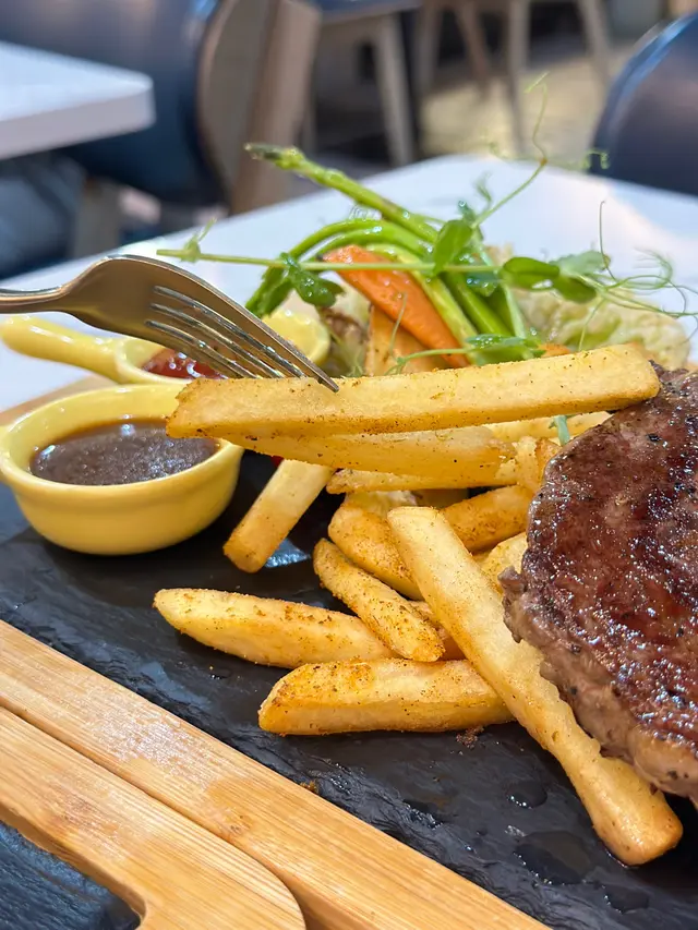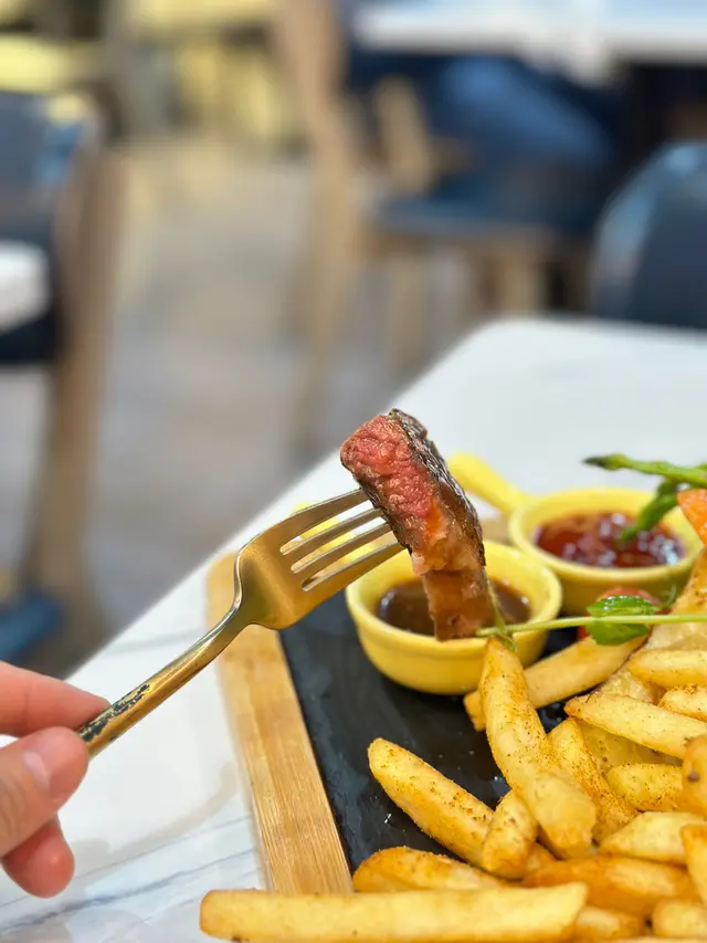揀左6成熟的牛扒,肉質juicy,牛扒的面層有啲焦香,再配埋紅酒汁,啖啖肉好好食。