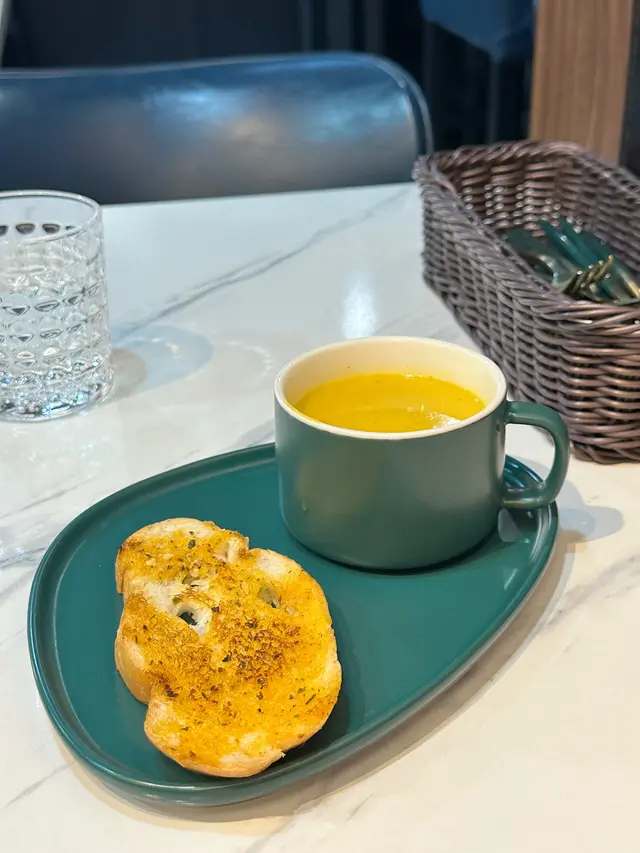 餐湯係真材實料嘅南瓜湯,湯質幼滑奶香甜