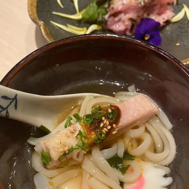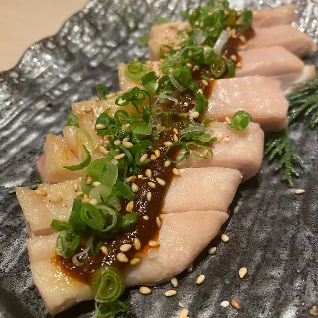 🐥慢煮過嘅九州地雞,色澤粉嫩,入口質感份外細膩,配搭有少許似港式沙茶醬嘅特調辛味醬,驚喜十足。