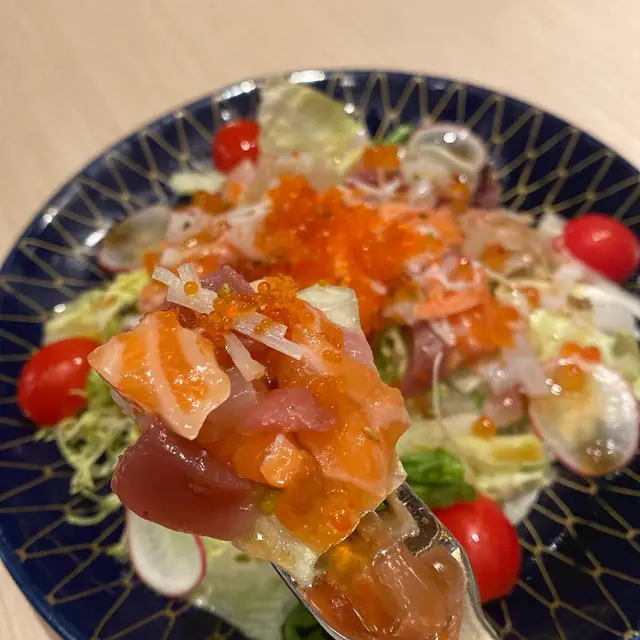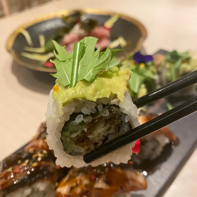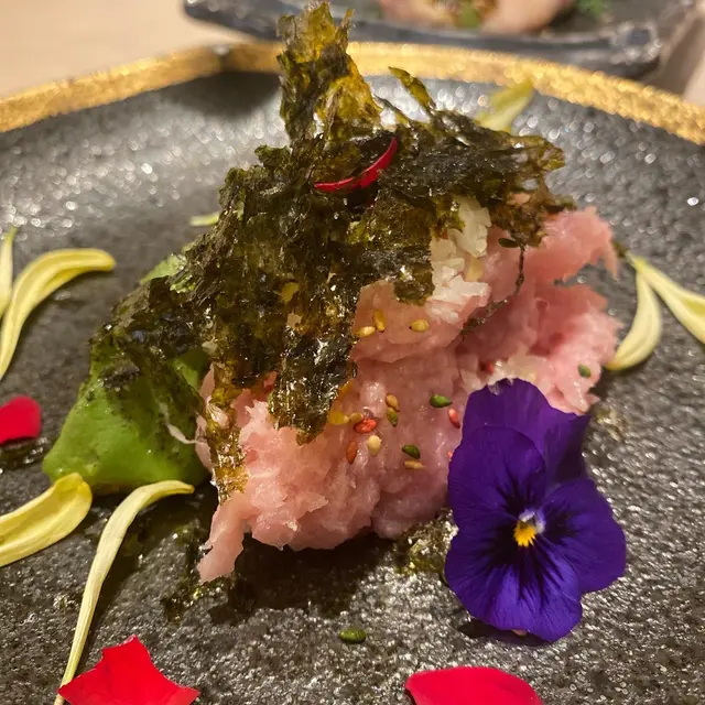 招牌之一嘅海鮮沙律味道清爽,簡簡單單嘅蔬菜配搭多款厚切刺身粒,入口鮮甜酸香,開胃非常,顏色是色彩繽紛的。接着上嘅牛油果吞拿魚蓉入口質感細滑,輕燒過嘅牛油果,綿度更佳。