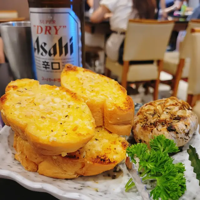 蒜蓉包烘到金黃香脆,再搽上香濃嘅蒜味醬!嗰種蒜香衝擊真係令人停唔到口🧄食完記得飲啖茶,唔係聽朝同人講嘢會變咗人肉蒜頭噴霧機呀😂哈哈!