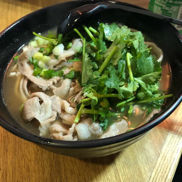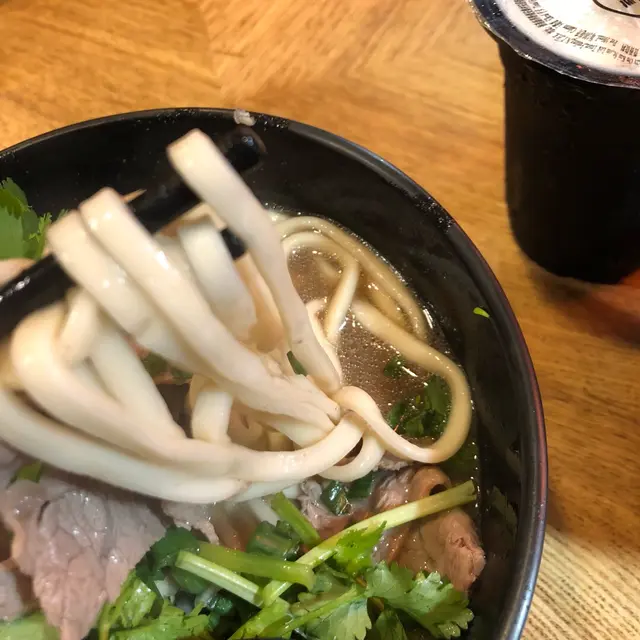 成碗麵上面鋪滿芫荽,牛肉片新鮮但就偏少同瘦