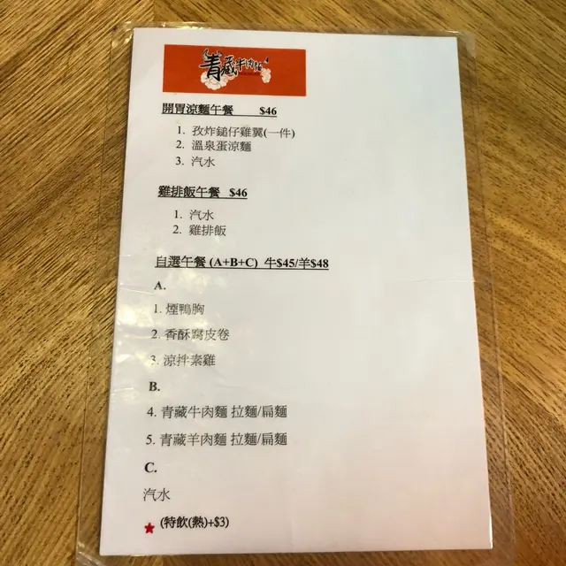 店內自選午餐款式不多,除左青藏麵另外只有涼麵同炸雞排餐揀