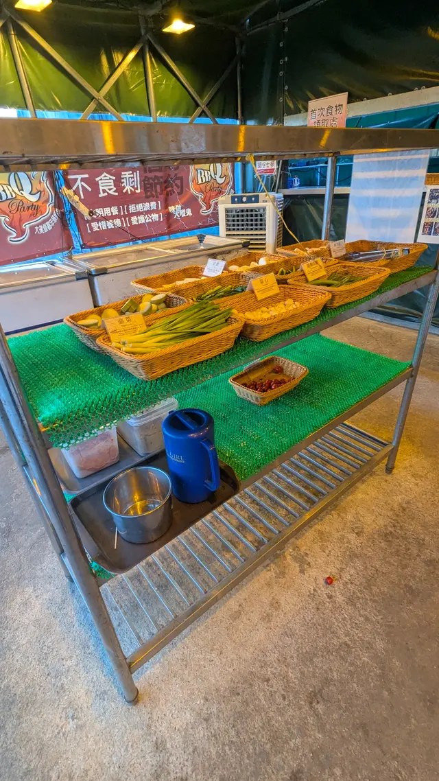 這裡提供超過50款不加味精的醃製食材,包括香辣火腎、蒜香雞全翼、黑椒牛仔粒、土匪雞中翼、香草雞中翼、燒汁牛扒等等,燒起來香噴噴,扒類食物夠juicy。此外,還有無限添加的孜然粉、辣粉和豉油,讓你自由調味,享受個人化的燒烤體驗。丸類和蔬菜款式亦很多,韭菜、茄子、冬菰、洋蔥等等。