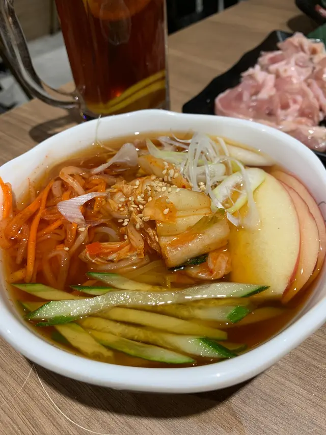 主食方面可以選擇普通的白飯(不用加錢)或者加錢升級其他其食,例如大人氣溫泉蛋拌飯 (+$18)。這個拌飯配上美味的溫泉蛋和飯素,口感豐富,每一口都充滿著濃郁的蛋香。還可以選擇盛岡冷麵 (+$28),如果你想吃一種清爽、健康的冷麵,盛岡冷麵是一個絕佳的選擇。盛岡冷麵的麵條非常細,口感輕盈,並帶有清新的口感。它的湯汁是由魚、肉、香草和其他調味料熬製而成,讓它的味道豐富多彩,同時也非常健康,可以平衡燒肉帶來的油膩感。