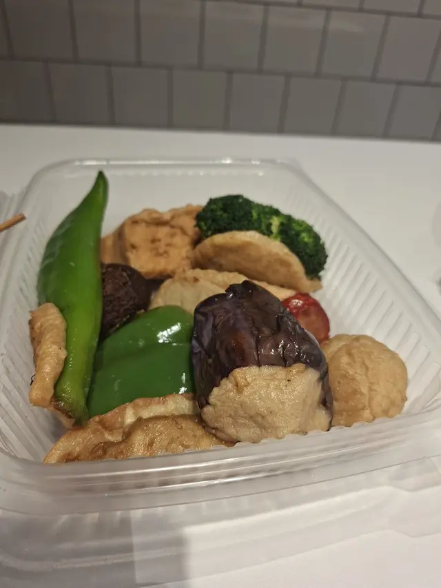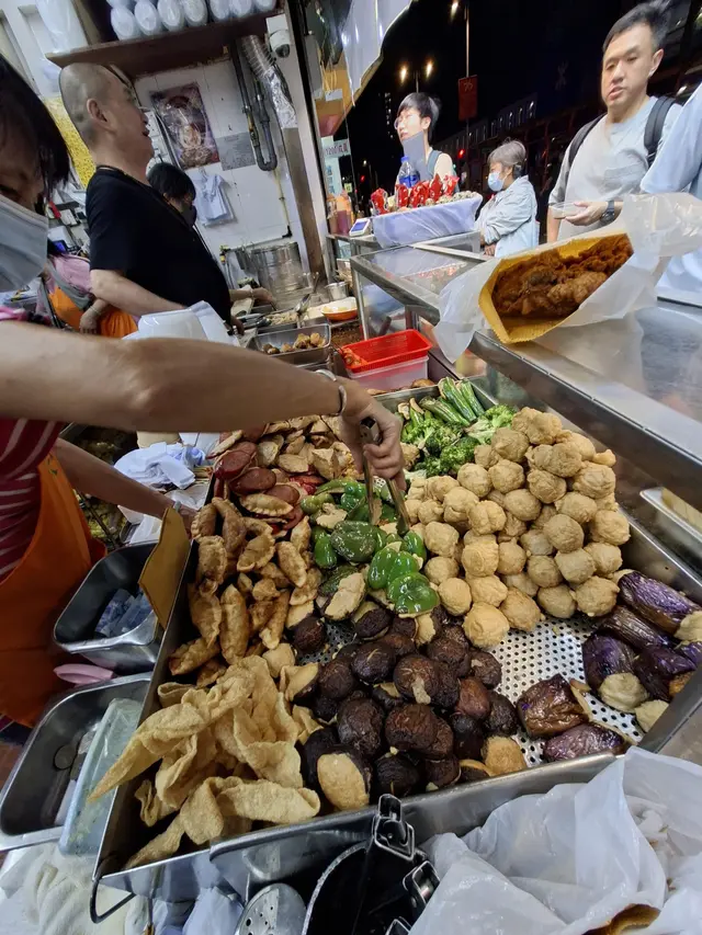 街頭小食之王❗多款食材包括茄子🍆、尖椒、青椒、魚蛋、餃子、豆腐和紅腸,釀上彈牙的鯪魚肉🐟,再喺高溫油鍋裡炸,熱辣辣出爐,淋上豉油或辣醬,外皮微脆,內裡燙口,魚肉🐟鮮香,茄子🍆軟糯,青椒爽脆,魚蛋彈牙,一份滿足晒所有慾望💕