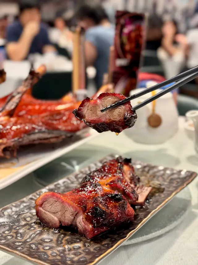 鵝皮烤得香脆透光,肥瘦均勻,肉質鮮嫩多汁