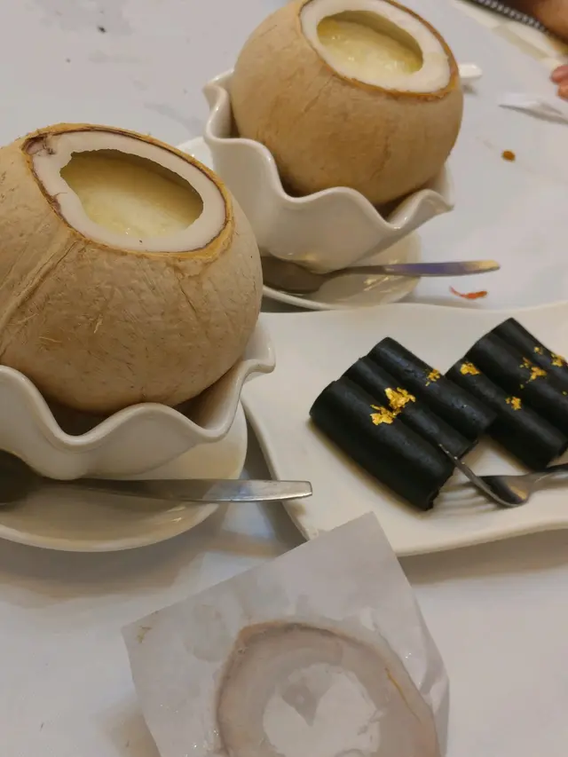跟住甜品就整咗兩個椰皇燉官燕,同埋一個金箔芝麻卷 。官燕唔講大家都知佢點,椰皇先係我嘅強項,食親呢味嘢,連入面的幼嫩椰肉都括埋嚟食,要食椰肉真係有程序㗎!不過呢個程序我就唔會公開話畀大家知啦!