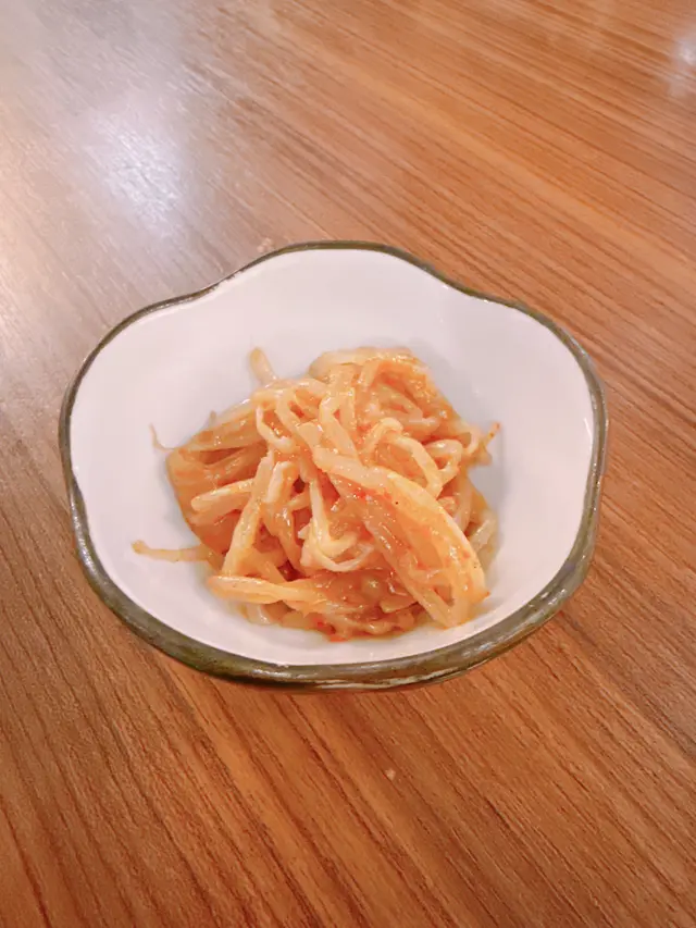 店家自家製醃製辣芽菜有少少辣又惹味。