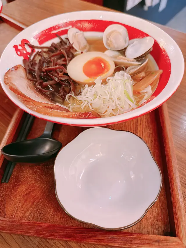 限定貝汁雞豚清湯 ,湯底係雞白湯幾清雞湯味,加了蜆,湯味道非常鮮甜,蜆肥大又鮮味,揀了燒叉燒肥瘦適中帶點焦香,入口即化,拉麵質自己揀軟硬度,揀了適中都幾彈牙,半熟流心蛋真心好吃。