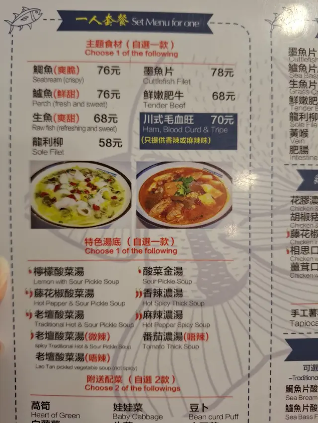 除了鯛魚片&酸菜,盤裡還有濶薯粉萵苣豆腐蘿蔔豆腐皮大豆芽金針菇娃娃菜海帶,慢慢食慢慢夾。