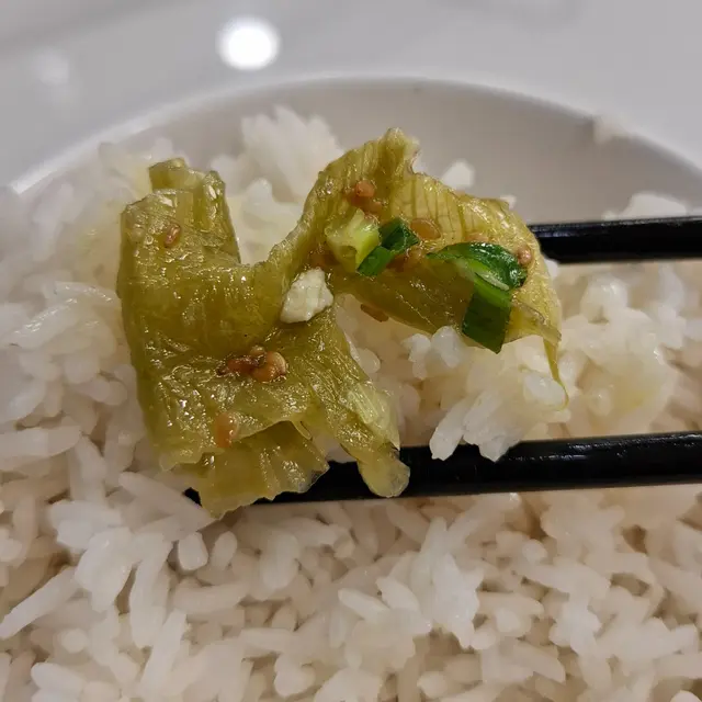 自己喜歡軟綿綿的白飯伴酸菜,鹹度剛剛好,仍嚐到米的原味。