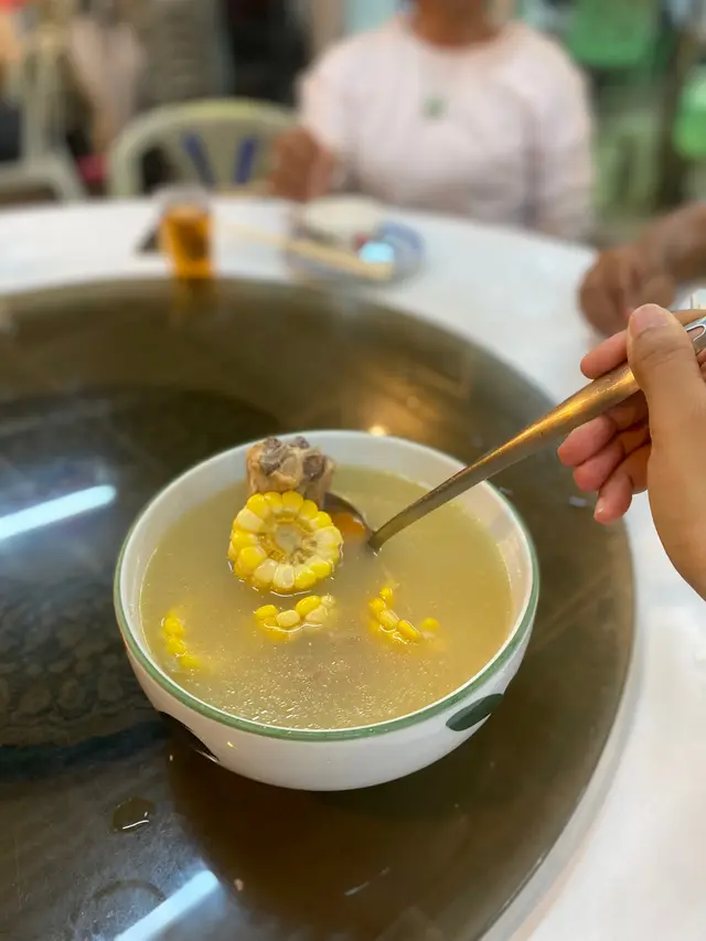 是日老火湯(送贈): 粟米瘦肉豬骨蘿蔔蜜棗湯,非常足料,粟米香甜,完全冇落味精,好健康,飲落唔頸渴。
